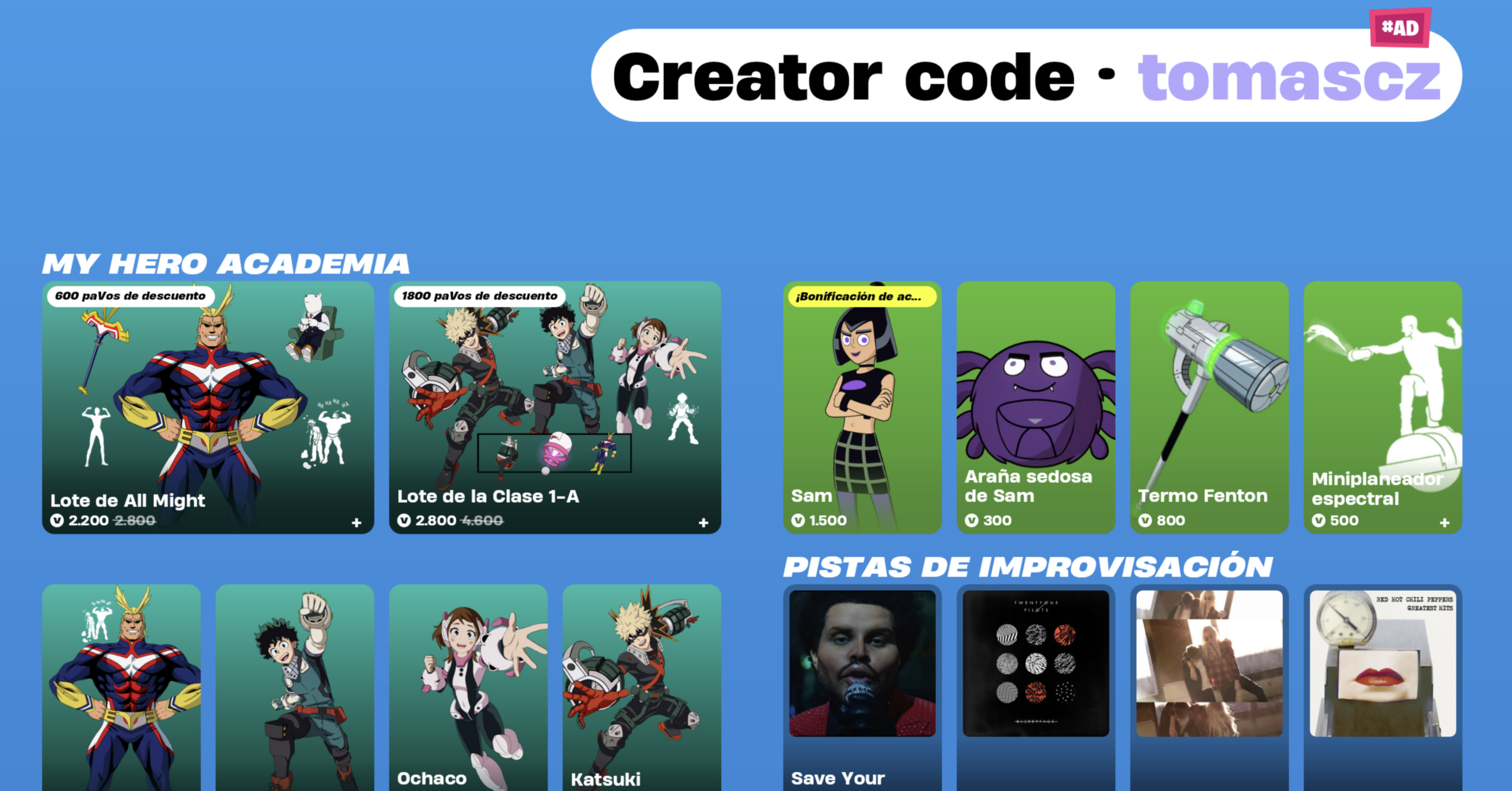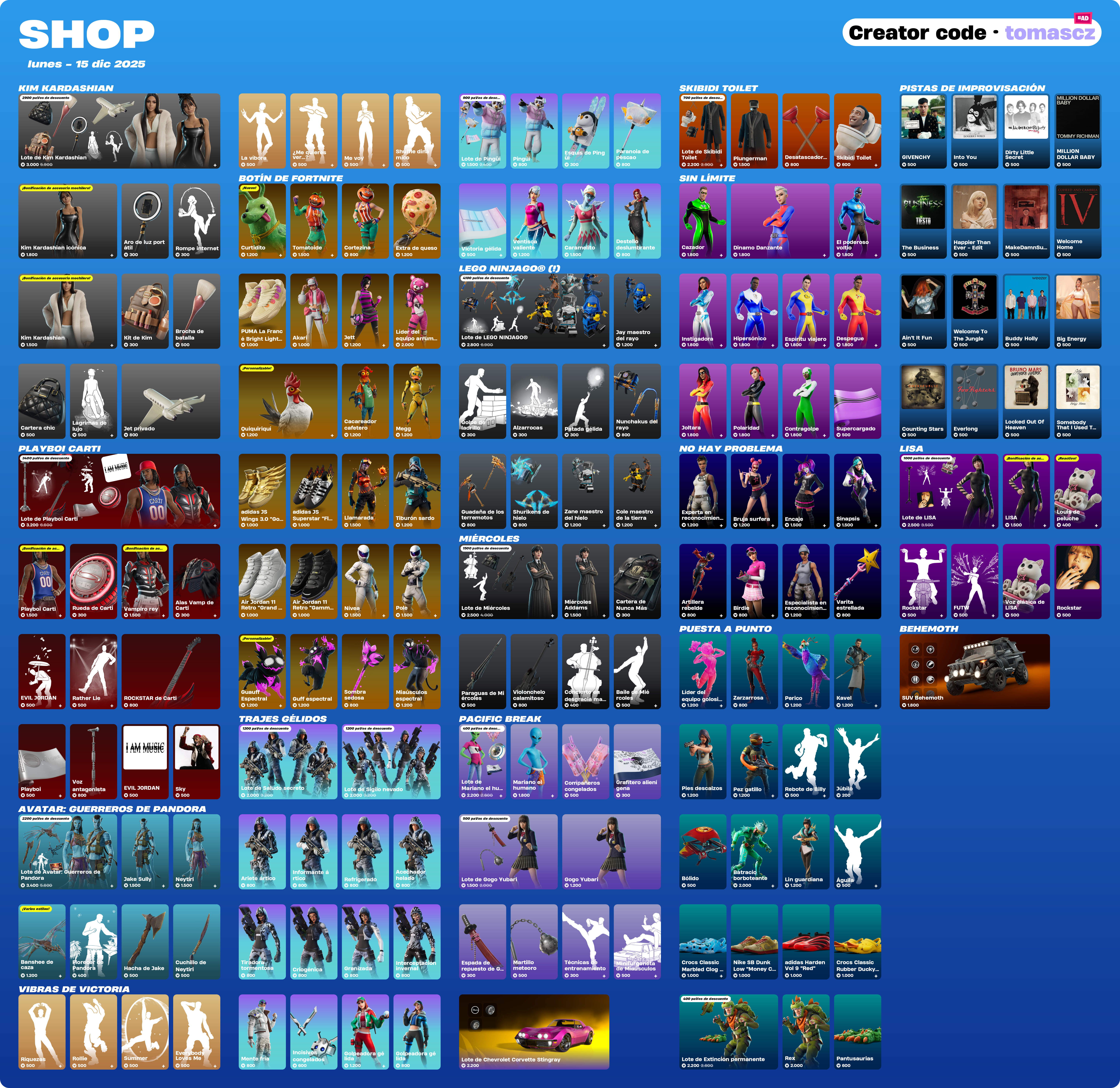 Si vas a comprar algún objeto en la tienda de Fortnite, recuerda apoyar el contenido usando el código de creador: TomasCz. Es una forma directa y gratuita de ayudarme a seguir creando mapas, guías y contenido para la comunidad. Recuerda que esta imagen publicamos tras la actualización de la tienda de forma inmediata en nuestro discord. La tienda de Fortnite HOY